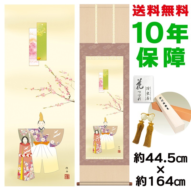 掛け軸 床の間 モダン 和風 立雛 長江桂舟 洛彩緞子本表装 約44.5 164cm 新絹本 10年間保証 収納箱 防虫香 風鎮 付き 1/15以降順次発送