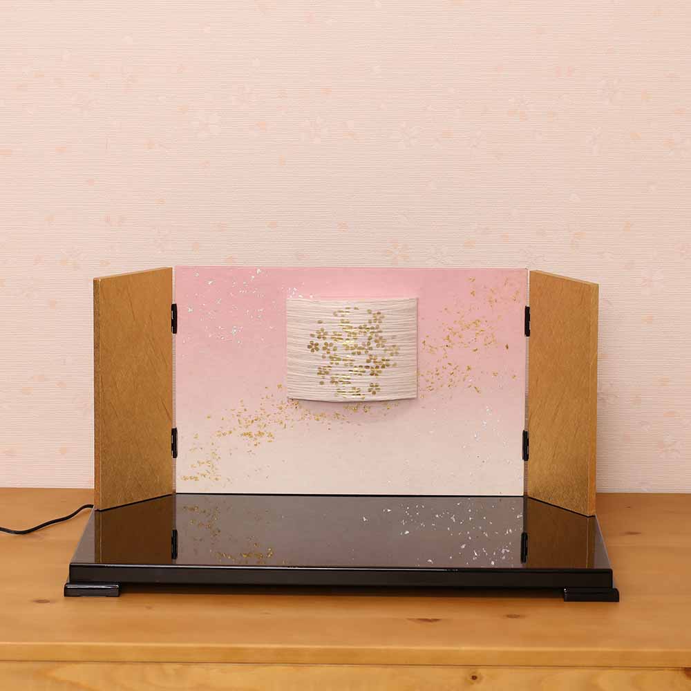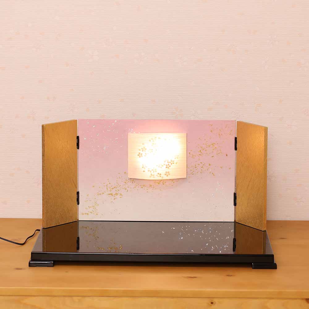 屏風には、灯り(照明)が点く工夫がされた、珍しいタイプの台屏風セットです。