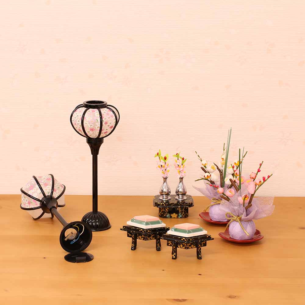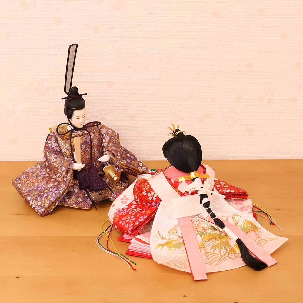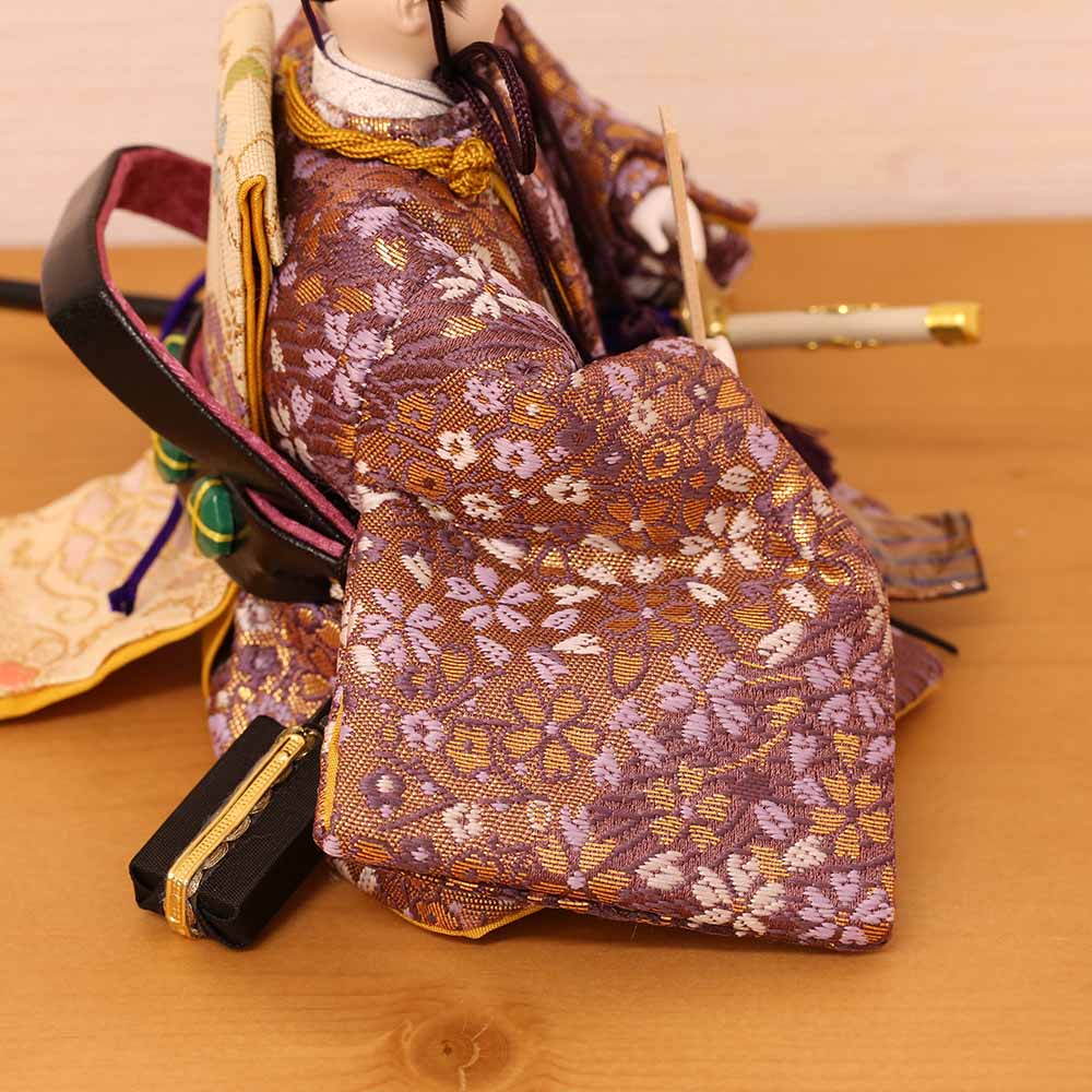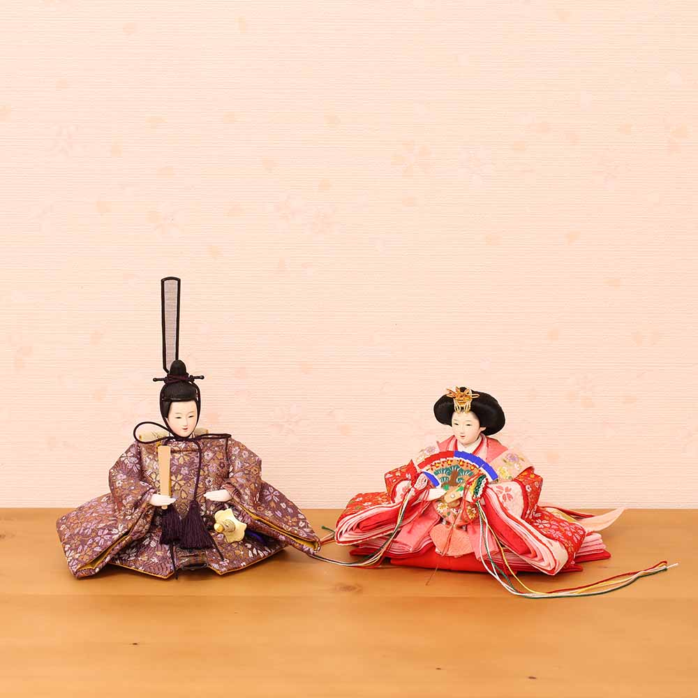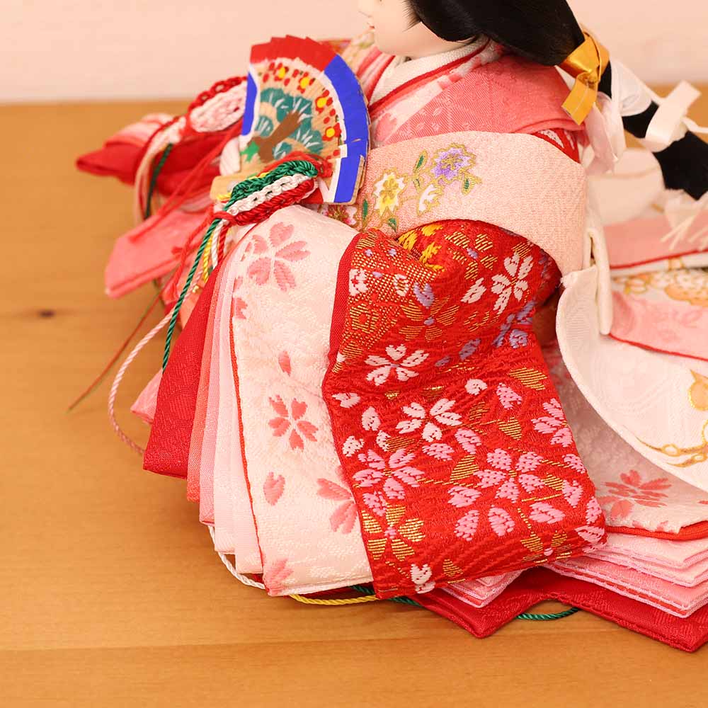 衣装は、男雛にはあずき色、女雛には赤を基調とし、桜柄が織り出された上質衣装です。