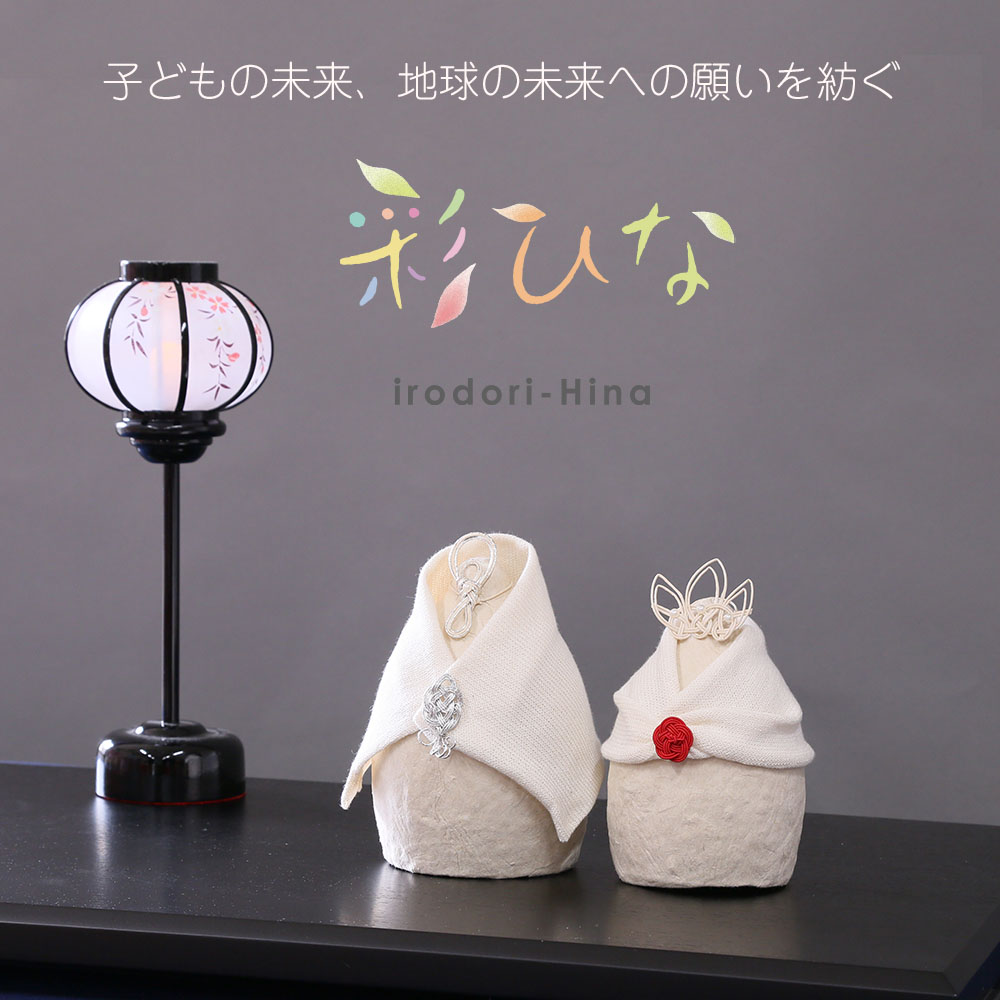 しかし、近年、飾る/収納するスペースがない、リビングに和の雰囲気があわないなどの理由で雛人形を飾る家庭は減少し人形作りの技術だけでなく、ひな祭りの文化さえも失われつつあります。 こうした中、一般社団法人アップサイクルに参画している「ネスレ日本」や「神戸市」らが推進する使用後の紙資源や未利用の間伐材から紙糸を制作するプロジェクト「TSUMUGI」と、人形の町・埼玉県岩槻にある「株式会社 工房天祥」がコラボレーションし、厄を祓い子どもの健やかな成長と幸福を願うひな祭りという伝統文化と地球環境を次世代へつないでいくプロジェクトが発足しました。子どもの未来、地球の未来への願いを紡ぐ「彩ひな(irodori-Hina)」