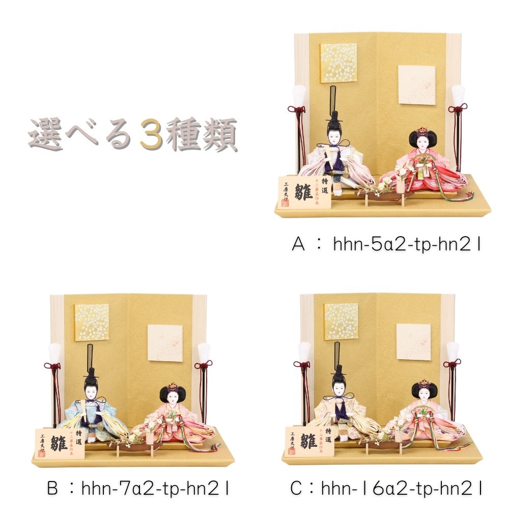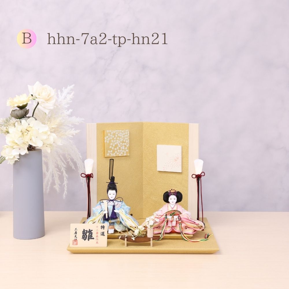 おしゃれな金屏風セットによって、お着物の上質感がより増す親王飾り雛人形です。【B】hhn-7a2-tp-hn21