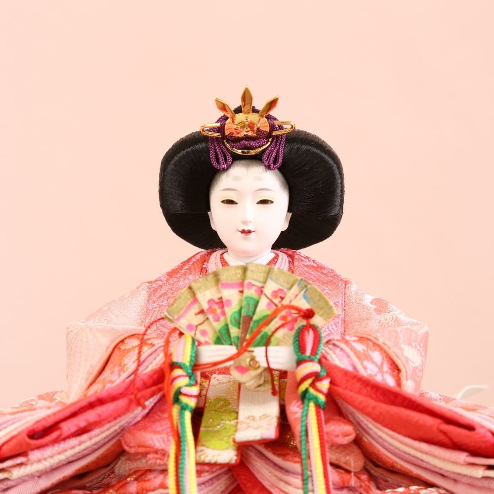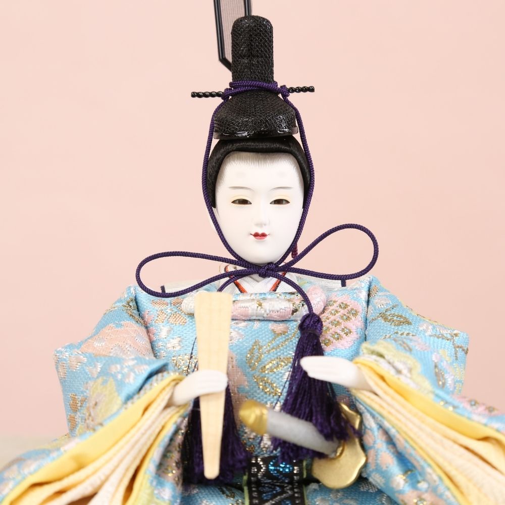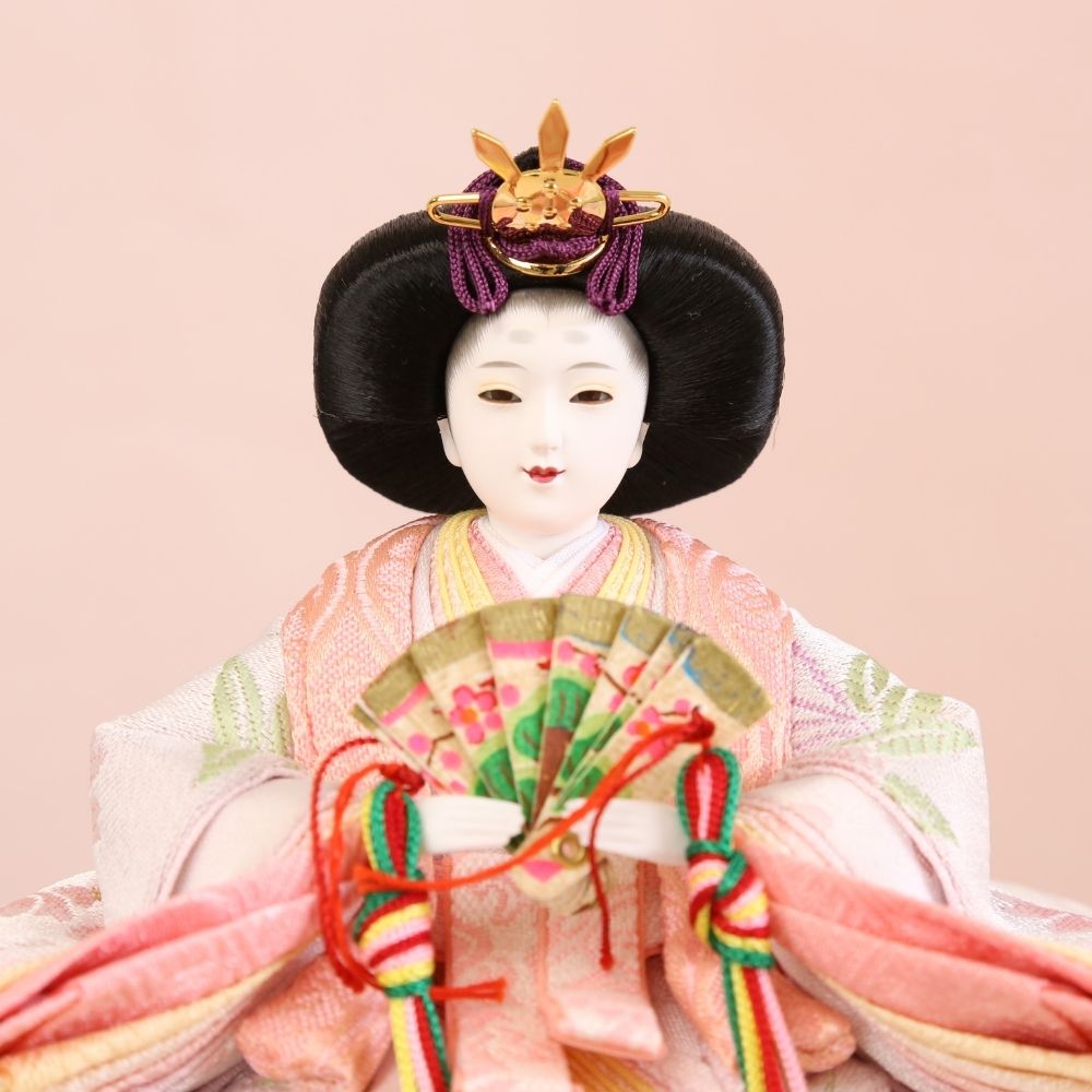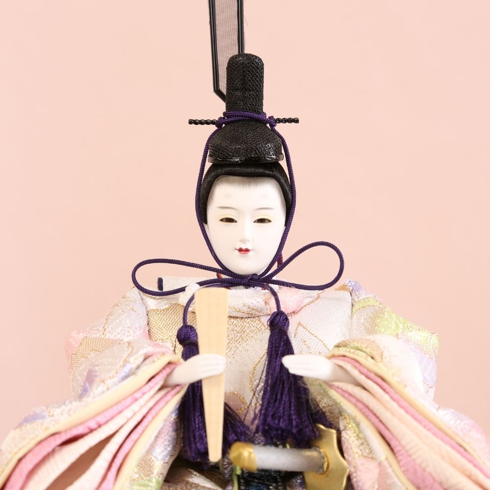 美形なお顔と上品なお着物が合わさって、さらにおしゃれな台屏風セットでコンパクトに飾れる、親王飾り雛人形です。