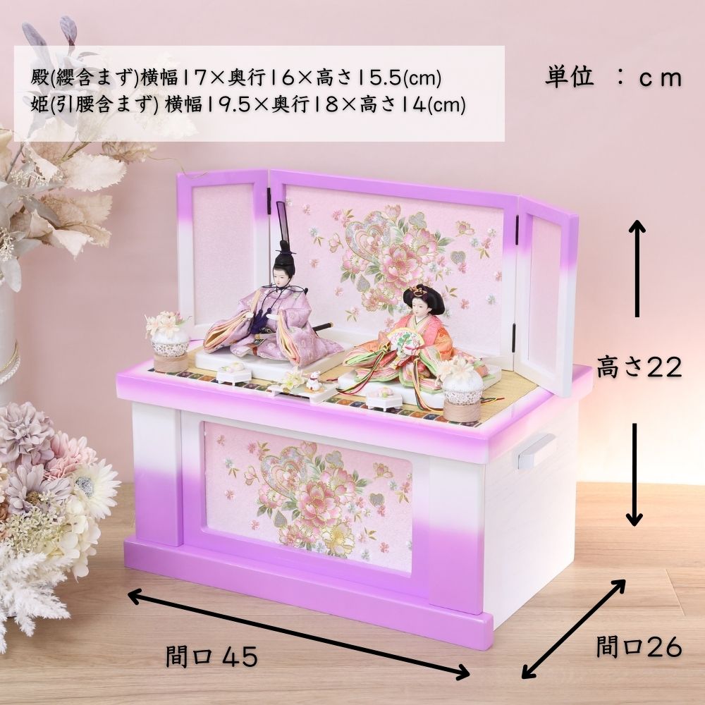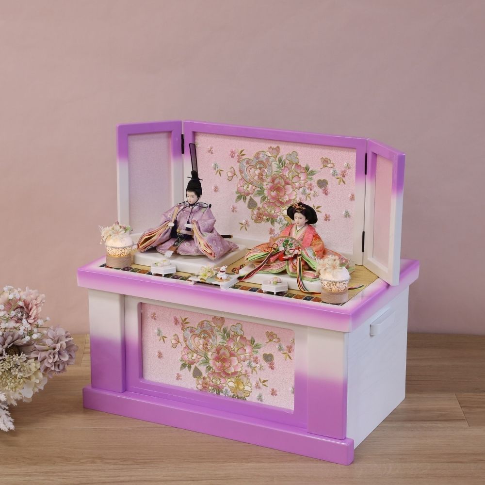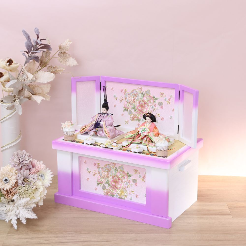 雛人形 ひな人形 収納飾り 小芥子親王飾り 横幅55cm はるる 小芥子親王 ラベンダー 薄紫 おしゃれ かわいい インテリア 初節句 お祝い ひな祭り 桃の節句