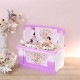 女の子から大人気のラベンダー色を使って、エレガントな印象と可愛らしさが詰まった、収納飾り(小芥子親王)の雛人形です。 フローリングの洋室にも合わせやすくお洒落に飾れる収納タイプの雛人形は、飾り台は収納箱として、雛人形・小道具・屏風など一式を収めることが出来ます。 小桜柄が華やいだ京都西陣金襴織物のお衣装は、女雛にはピンク色、男雛には薄紫色の春らしいパステルカラーが魅力的。ラベンダー色の台屏風セットと相性の良い色合いのお着物に、かわいいお顔の雛人形です。 また、美しい雰囲気と可愛らしい表情のどちらも兼ね備えているお顔は、工房天祥オリジナル、人気の親王飾りです。 さらに、お雛様の両サイドには、スイッチ1つで灯りがともる、ぼんぼりの機能もついたお花飾りがおしゃれな雰囲気に仕上げています。