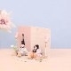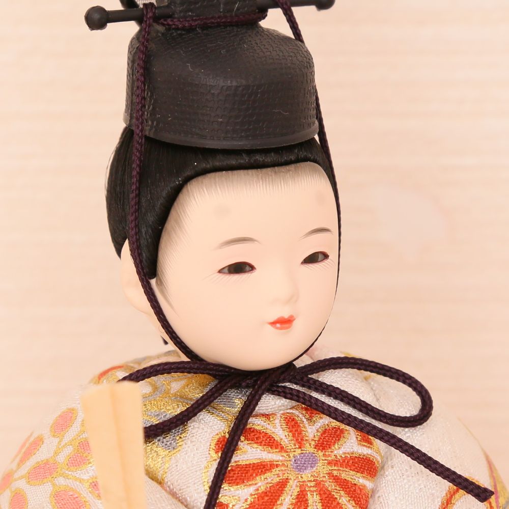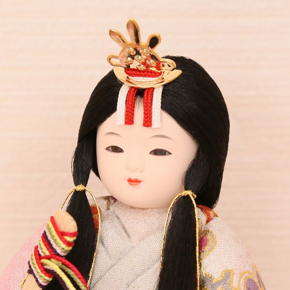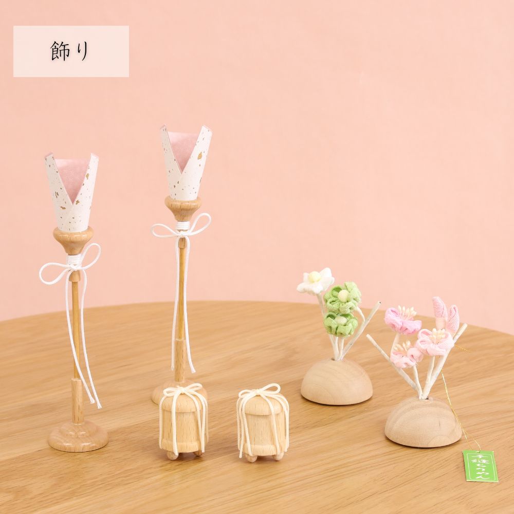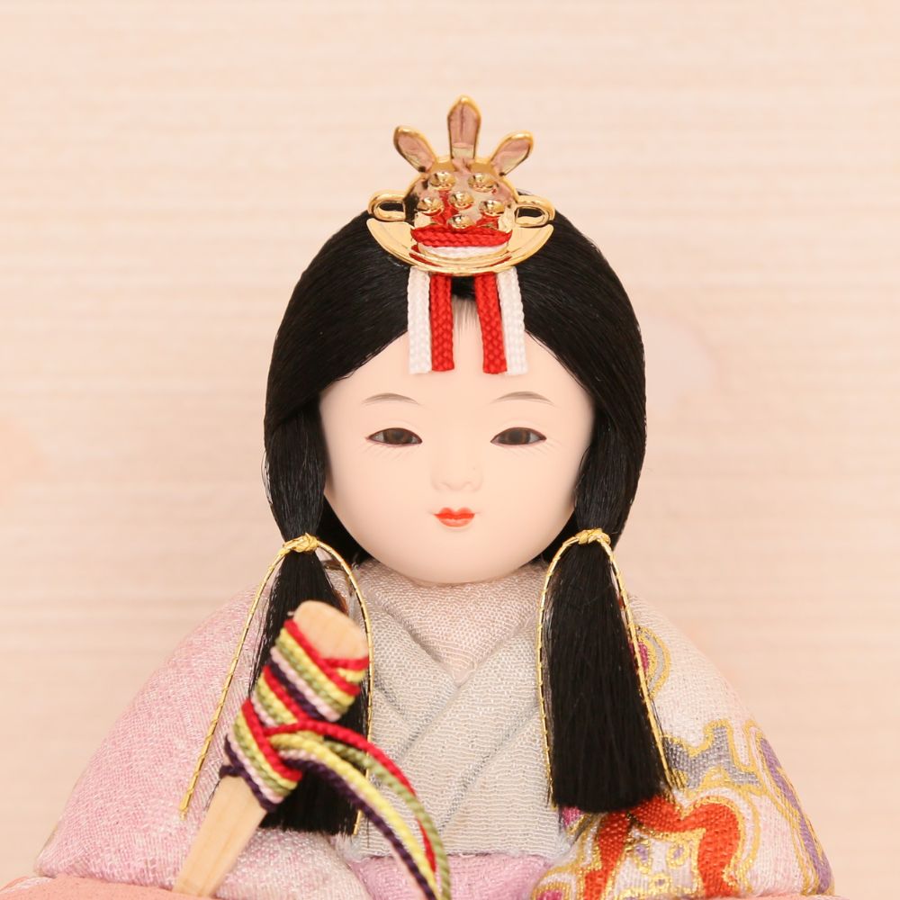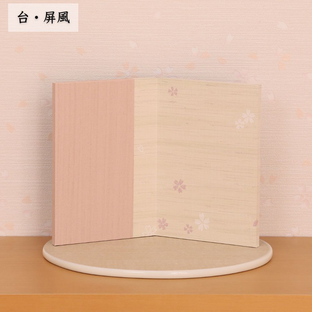 場所を選ぶことなくコンパクトにそして気軽に飾れる、現代のお住まいに適した、親王飾りの雛人形「ひらり」。 横幅27cmと小さいサイズに、和モダンな屏風をセットしました。 さらに、木製の貝桶や油灯、ちりめん細工の桜橘も付いて、小さいながらも存在感たっぷりです。 また、割り毛タイプのお下げ髪の女雛は、愛らしいお顔が魅力的。 男雛が淡い水色、女雛にはピンク色の西陣裂地、上質素材を用いています。 そして、くすみピンク色のポイントカラーと小桜柄デザインの屏風によって、北欧風スタイルでおしゃれに飾って頂ける木目込み雛人形に仕上がっています。 「ひらりシリーズ」商品詳細説明 ひらりひらりと桜の花が舞う季節、かわいいコンパクトサイズの雛人形が新登場。 「ひらりシリーズ」の雛人形は、手のひらにおさまる小さな木目込み雛人形です。 筋彫りに布地を埋め込んで、まるで衣裳を着ているかのように仕立てる、職人の手仕事による雛人形です。
