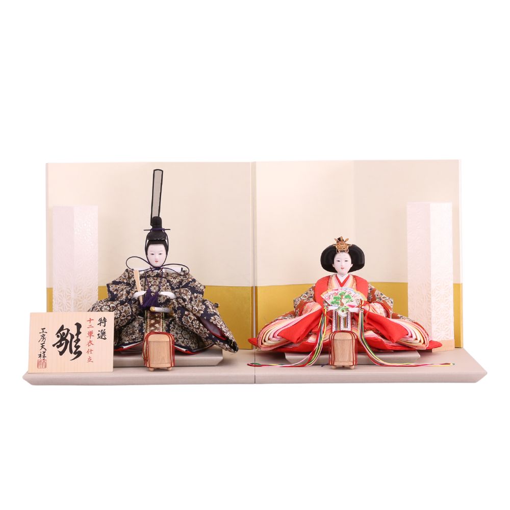 雛人形 ひな人形 新古今雛 高級雛人形 名古屋帯仕立て 工房天祥オリジナル 小三五親王飾り 正絹帯 金屏風 初節句 お祝い ひな祭り 桃の節句