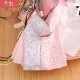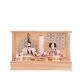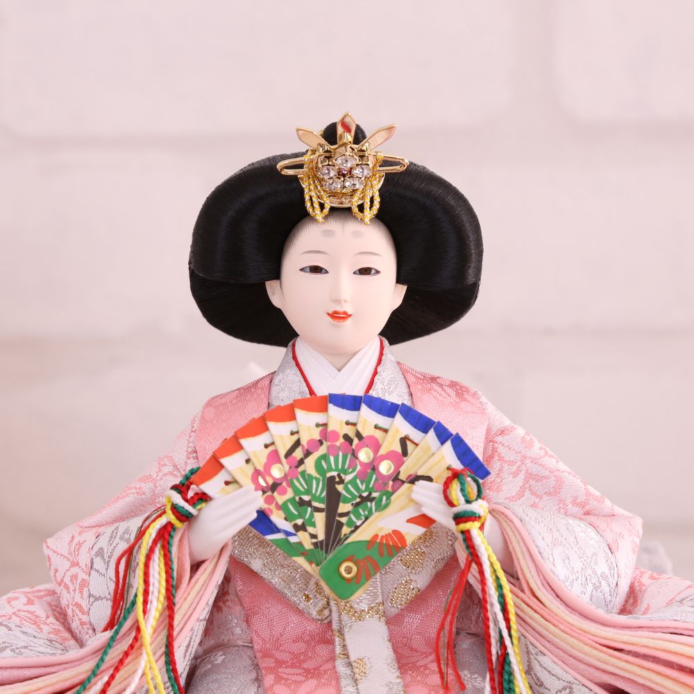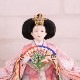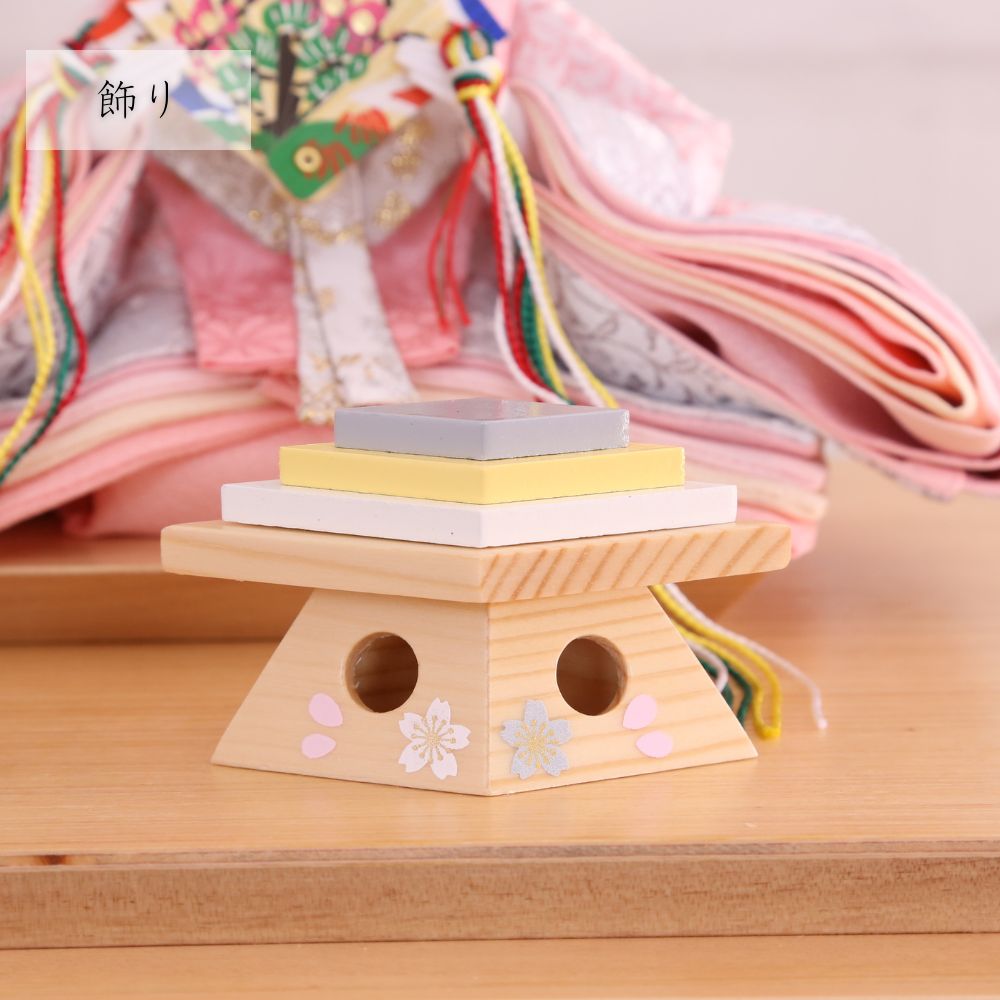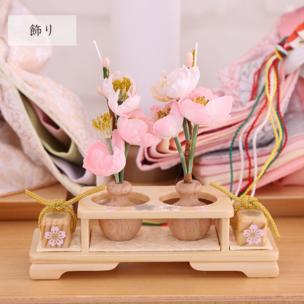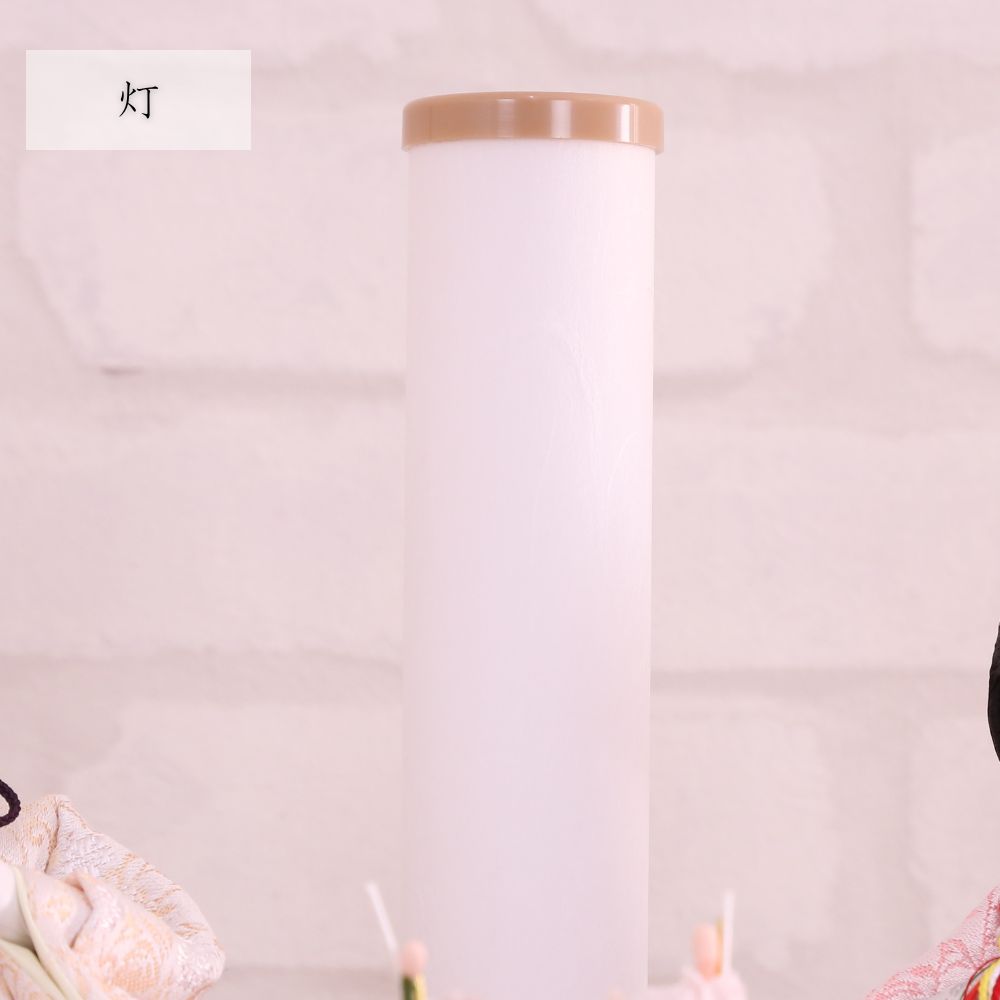桐製枠のアクリルケースのバックには麻の葉文様柄がデザインされ、洋室にも合わせやすい親王飾りケース入りです。 また、男雛にはクリーム系のお色をベースに、女雛は淡いピンク色を基調とし、縁起が良いとされる唐草文様柄を織り出した京都西陣織物のお着物のお雛様を合わせています。 さらには、前飾りの菱三宝は現代風にアレンジされて木製で統一感を出し、スタイリッシュな円柱型行灯も付いて、おしゃれな高級ケース飾りの雛人形に仕上がっています。 現代のお住まいのインテリアとも相性がよい、親王飾りの雛人形です。