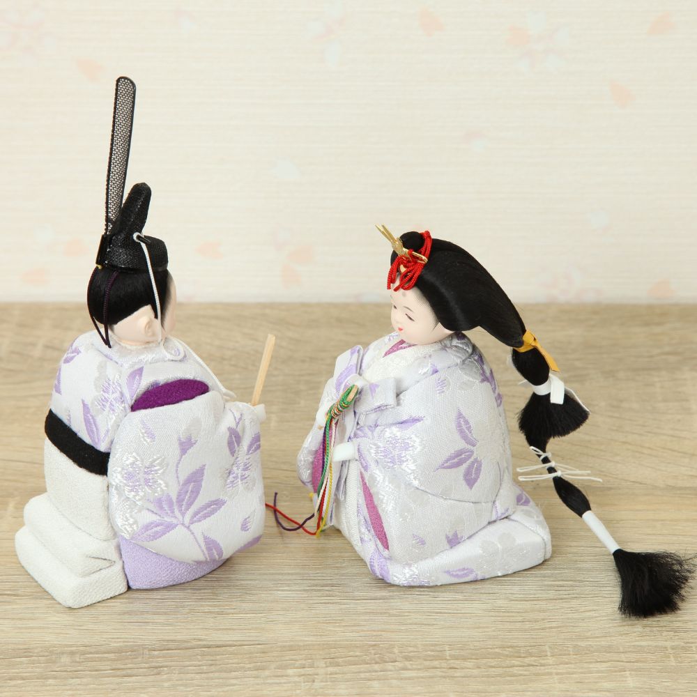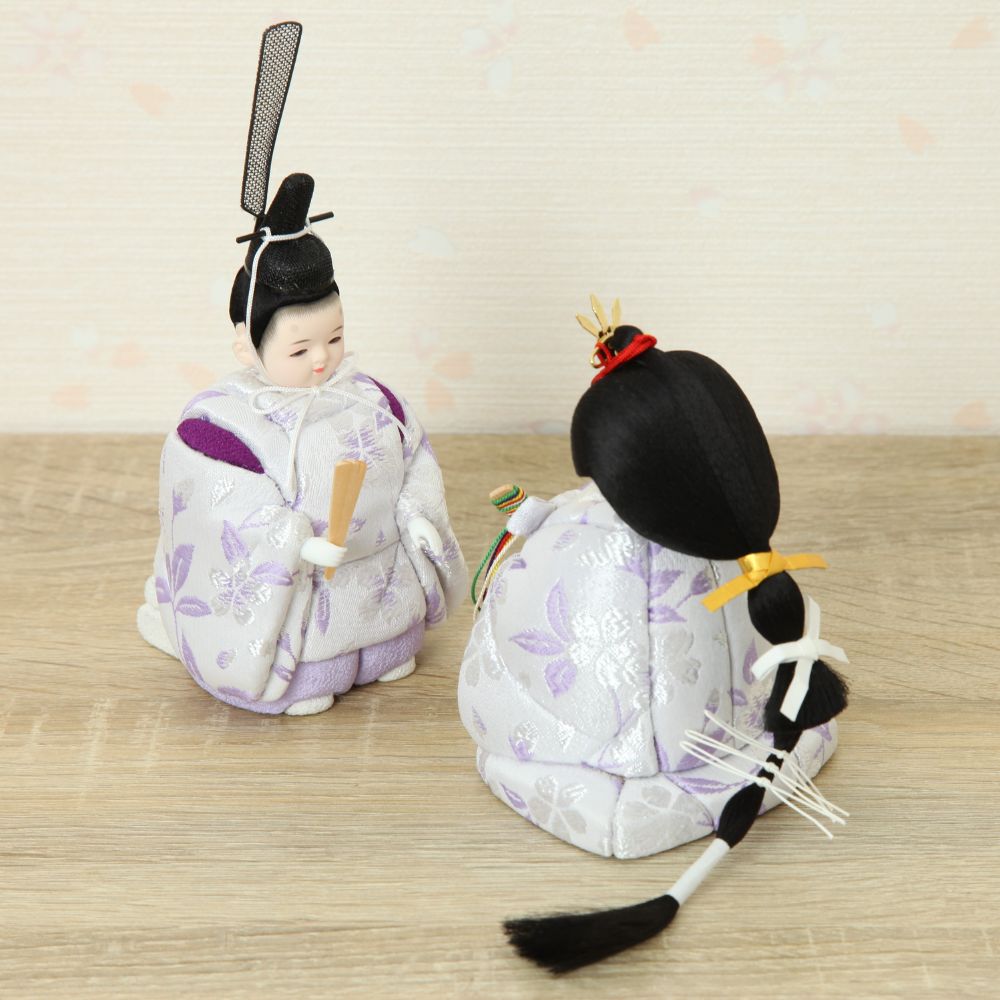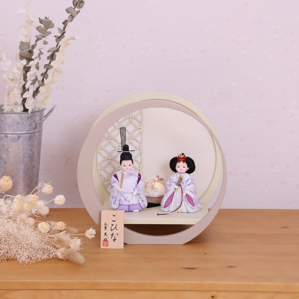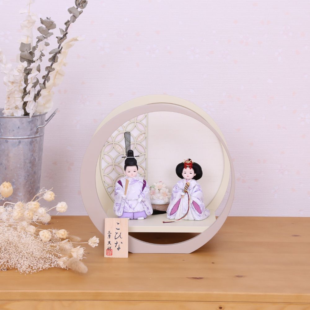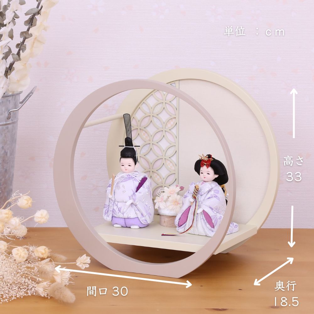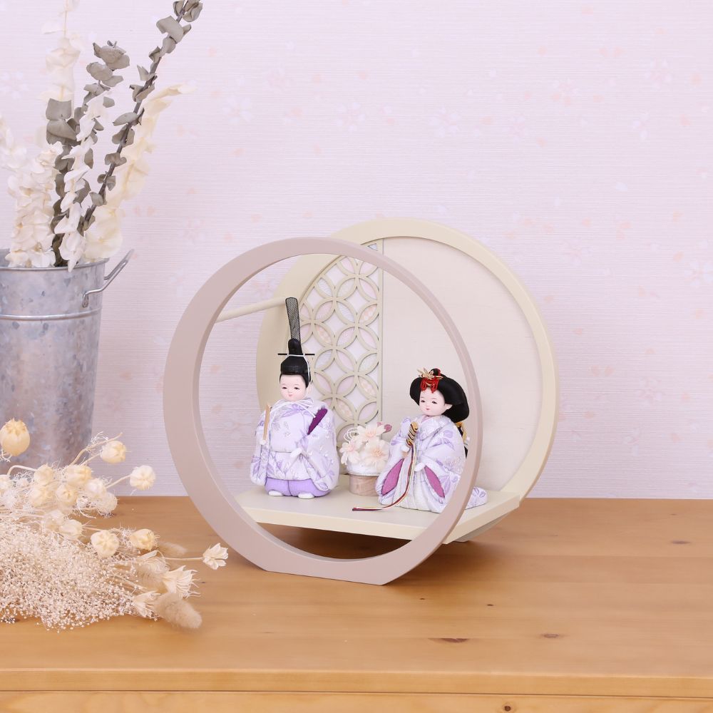 雛人形 コンパクト ひな人形 木目込み雛人形 親王飾り ココ 三日月型白屏風 かわいい 木目込みひな人形 小さい 横幅30cm クリーム 白 紫 お祝い 初節句 ひな祭り 桃の節句 ティピシリーズ