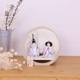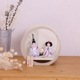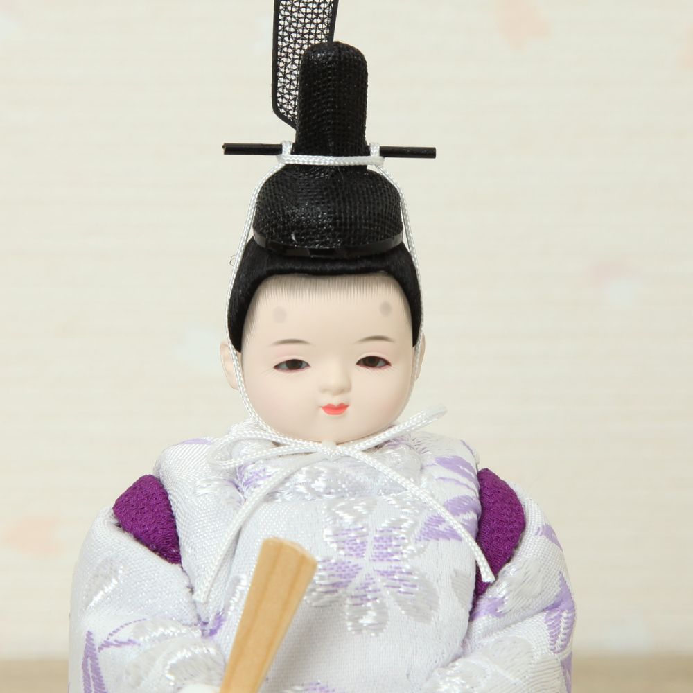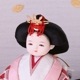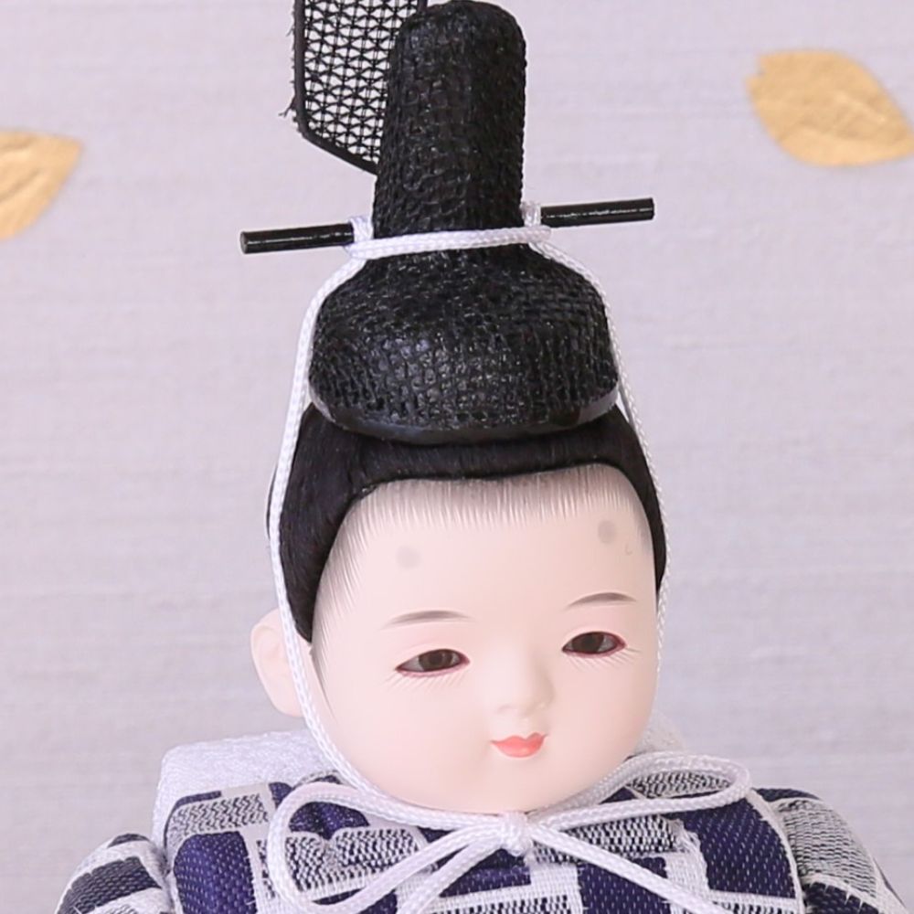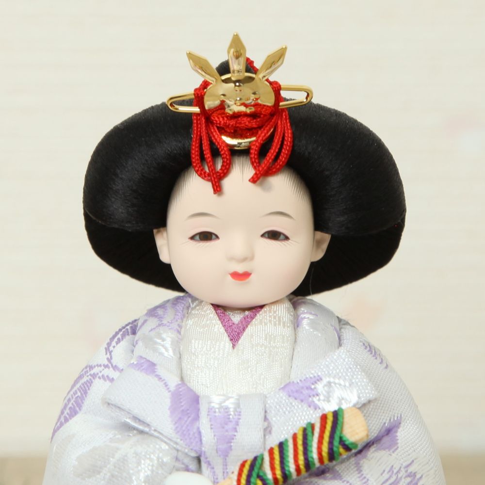 丸いお顔のお雛様は、木目込み雛人形では珍しい大垂髪(おすべらかし)の髪型です。ふっくらしたボディに親しみ深い表情で、見る人の心を和ませます。