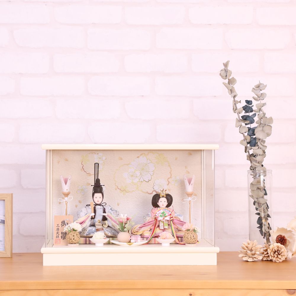 雛人形 コンパクト 白 ケース入り 横幅39cm ひな人形 ケース飾り 親王飾り かわいい おしゃれ 北欧風 小さい 白 モカ お祝い 初節句 ひな祭り 桃の節句