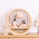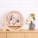 月型の横幅35cmとコンパクトな台屏風セットに、小さいながらも、京都西陣裂地で仕立てたお着物をお召しになり、かわいいお顔のお雛様を合わせました。
