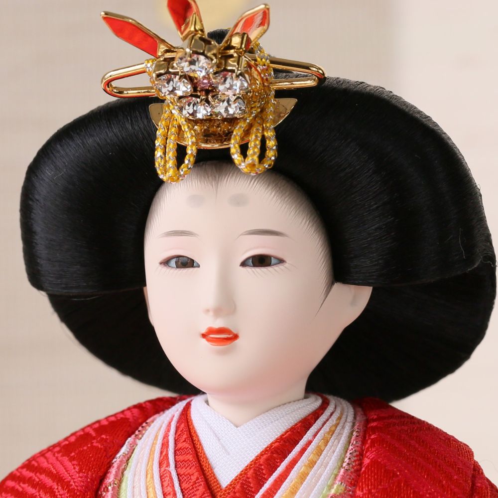 また、当店限定オリジナルのぷり姫シリーズは、キラキラ輝くストーンのついたティアラ風な玉串や、お顔はプリンセス仕様、現代風に仕上げた雛人形です。