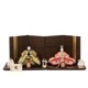 そして、両脇飾りのお花は雪洞としてスイッチひとつで灯りがともる仕組みになっている、こだわりのお道具類で仕上げています。 間口(横幅)60×奥行28×高さ24(cm)サイズ