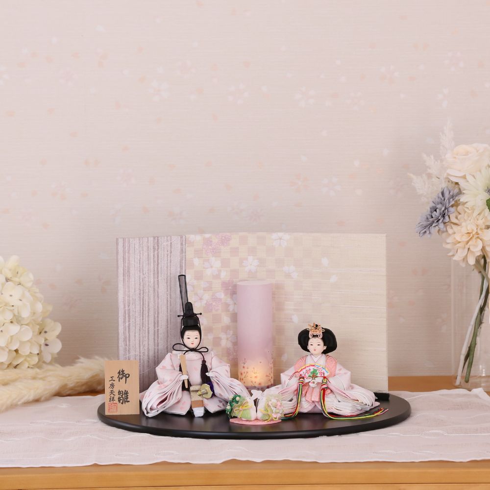 女の子から大人気の淡色ラベンダー色の、エレガントな印象と可愛らしさが演出された親王飾りの雛人形です。