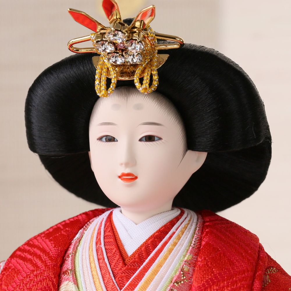また、当店限定オリジナルのぷり姫シリーズは、キラキラ輝くストーンのついたティアラ風な玉串や、お顔はプリンセス仕様、現代風に仕上げた雛人形です。 間口(横幅)60×奥行35×高さ32.5(cm)サイズ