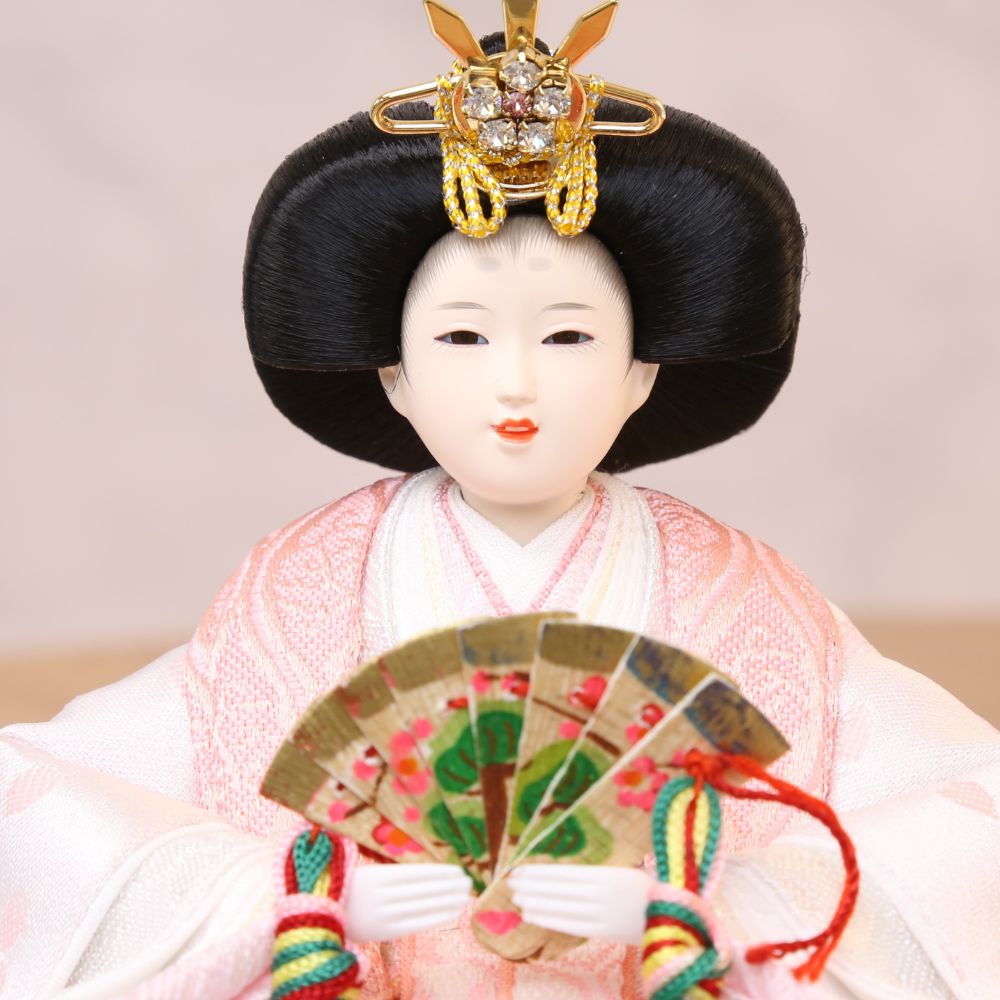 また、当店限定オリジナルのぷり姫シリーズは、キラキラ輝くストーンのついたティアラ風な玉串や、お顔はプリンセス仕様、現代風に仕上げた雛人形です。