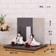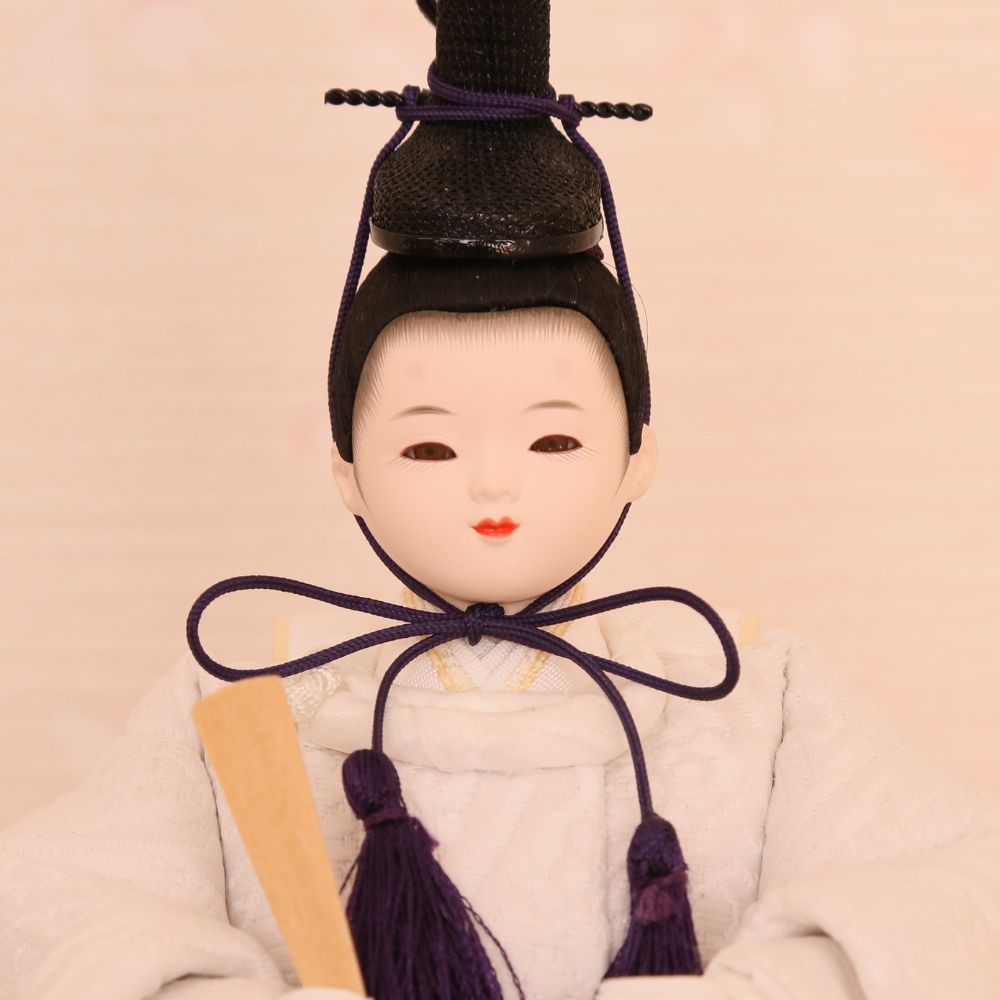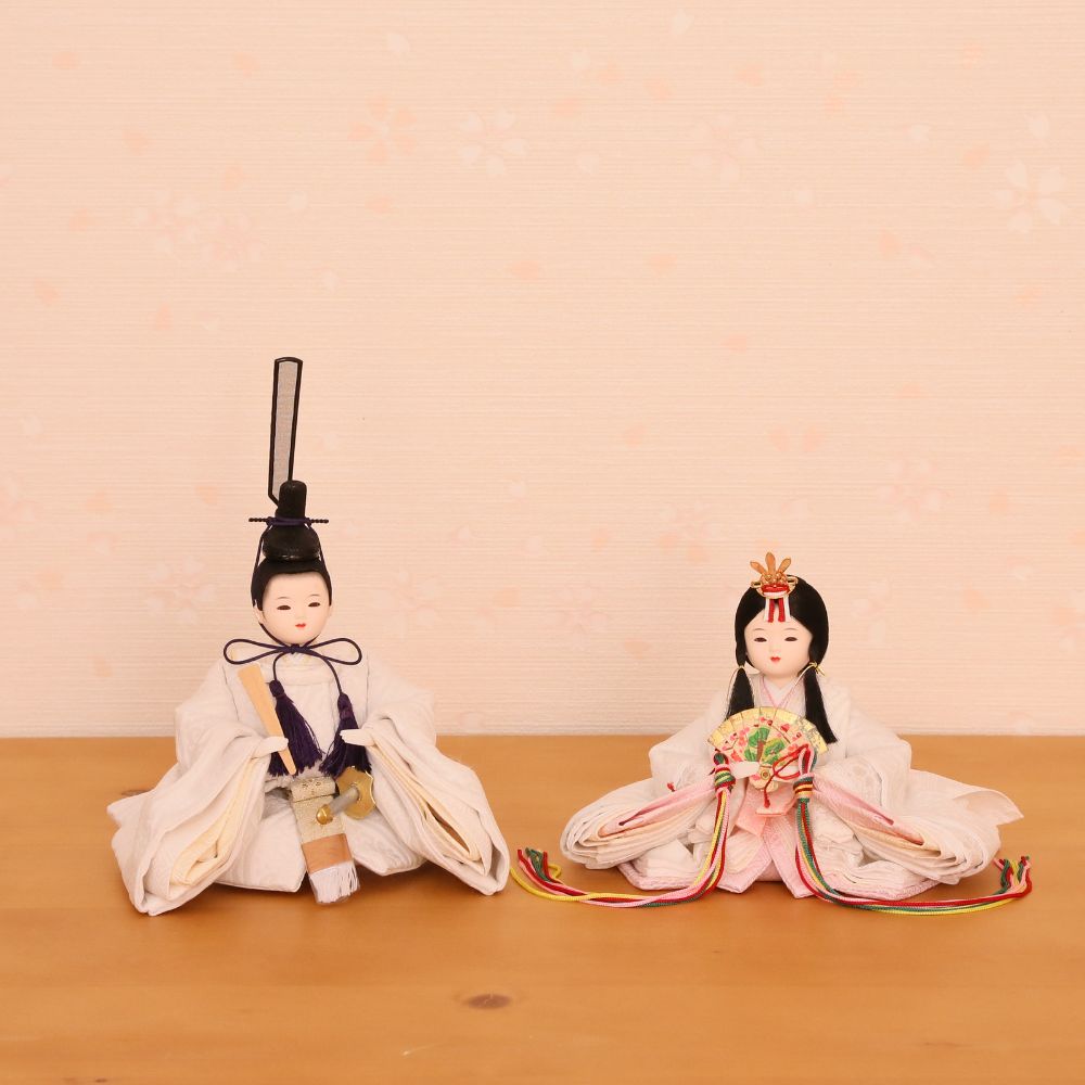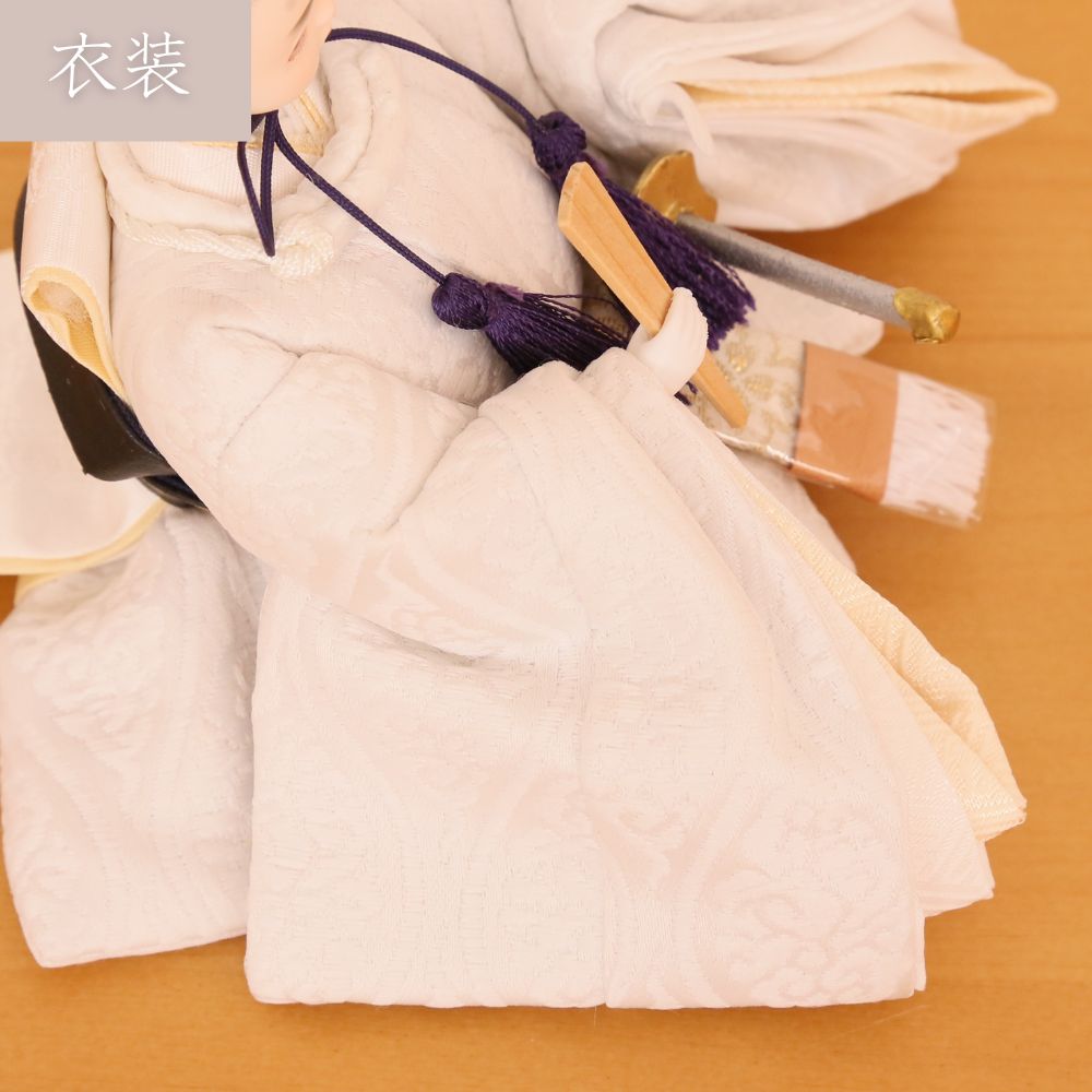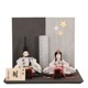 横幅35cmとコンパクトな台屏風セットに、男雛、女雛にともに白色を基調とし高貴な伝統文様の雲立涌柄を織り出された京都西陣金襴織物のお着物をお召しになられた柳親王のお雛様を合わせました。