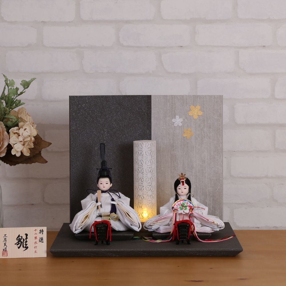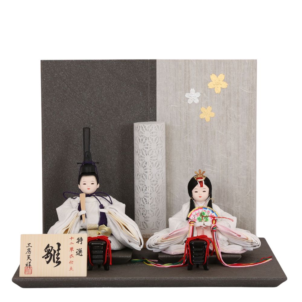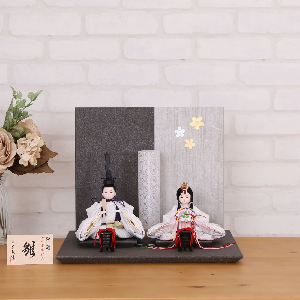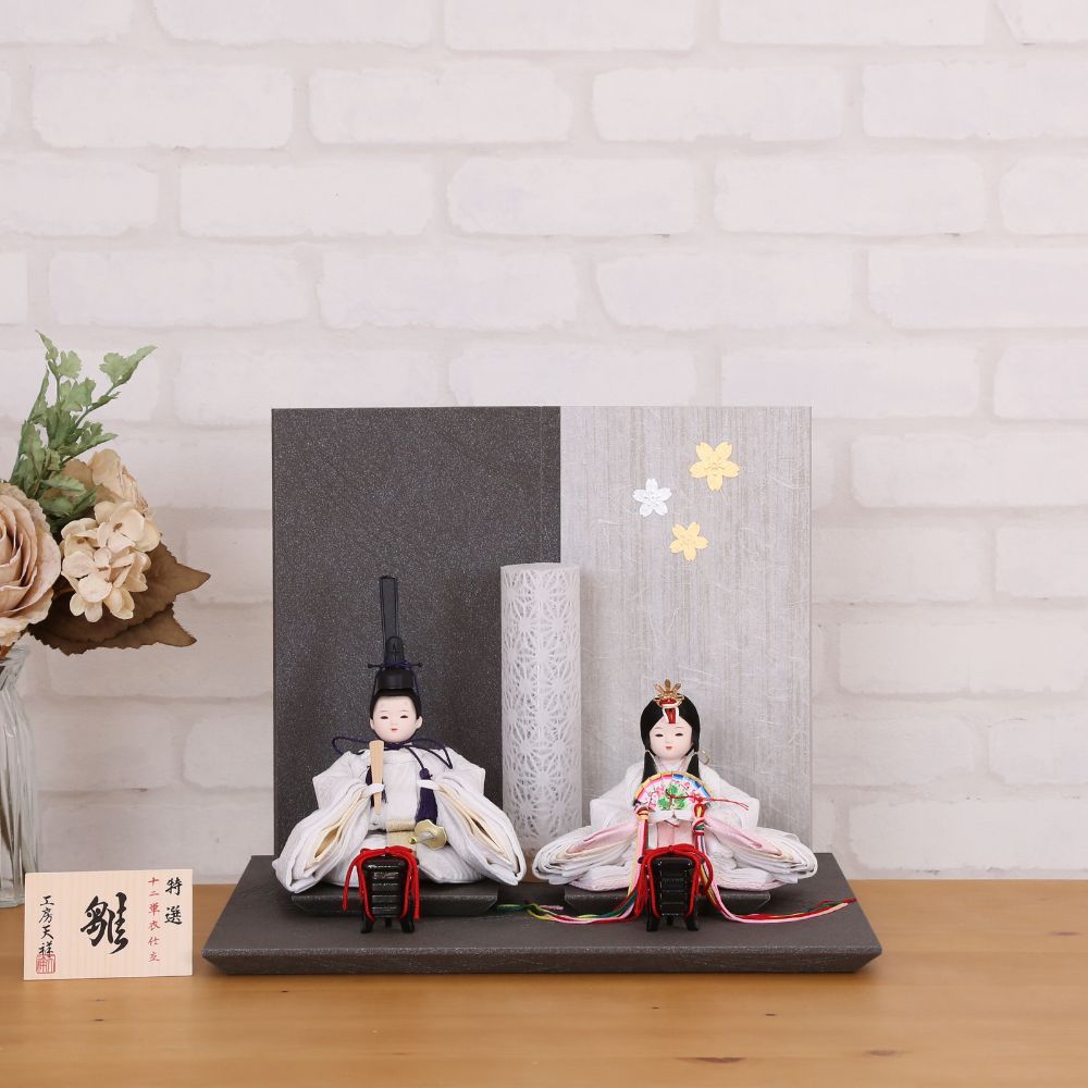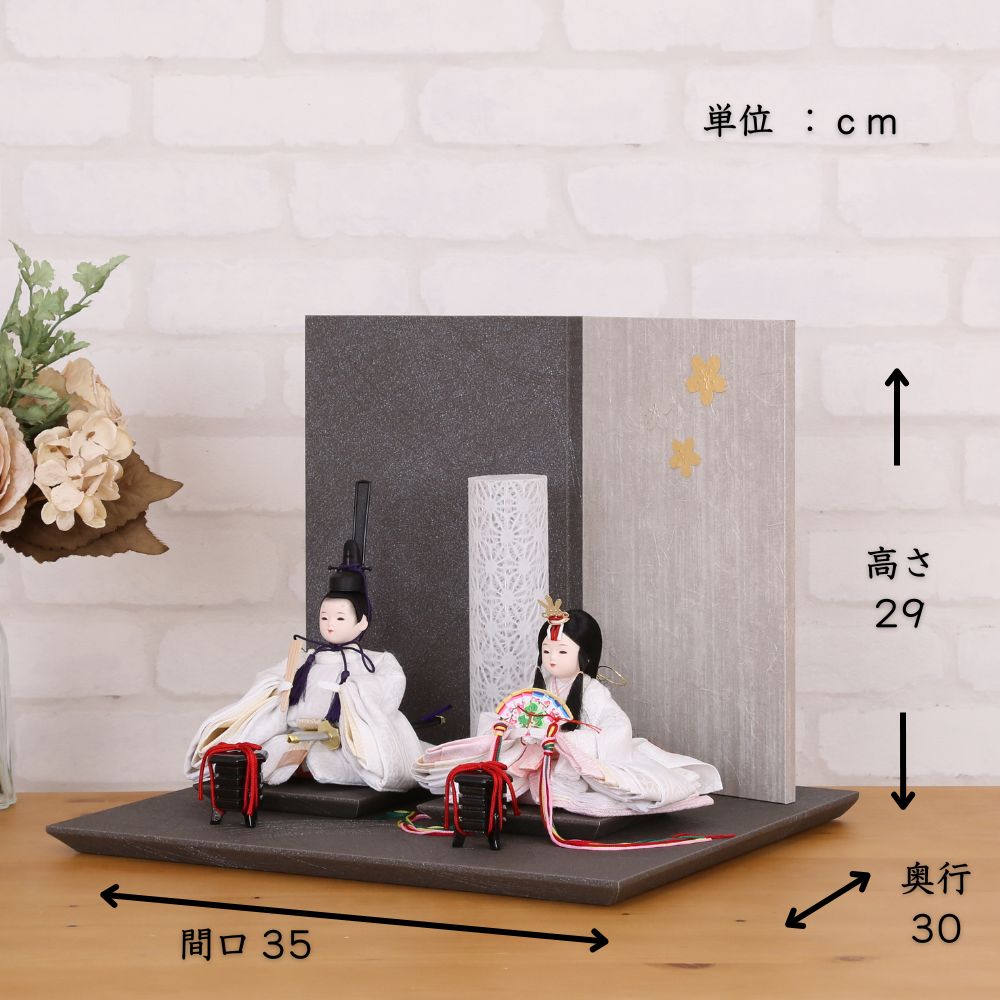 雛人形 コンパクト ひな人形 親王飾り 柳親王 かわいい ひな人形 小さい 横幅35cm 金 白 金銀箔押し桜屏風 お祝い 初節句 ひな祭り 桃の節句 ティピシリーズ