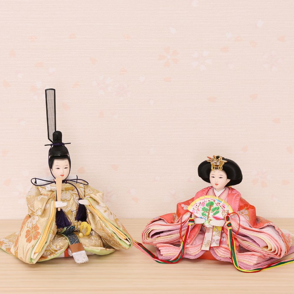 そしてピンク色の桜の花びらが織り出された京都西陣金襴織物のお着物をお召しになられた柳親王のお雛様を合わせました。