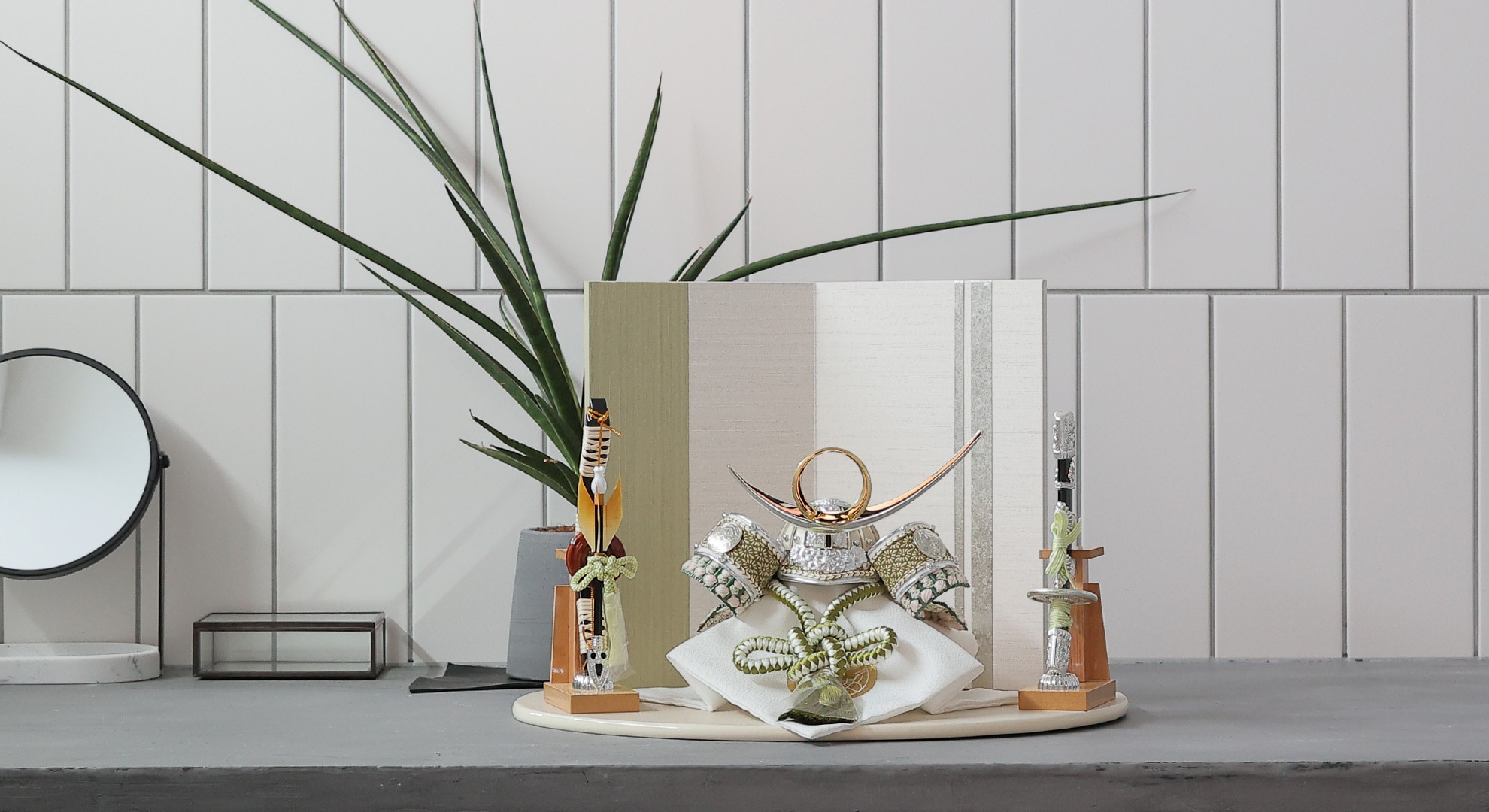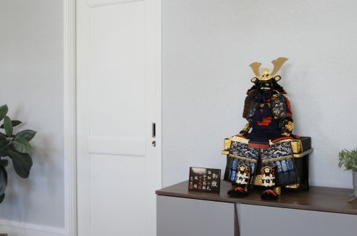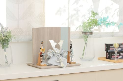 木目込みで作られたコンパクトなサイズの鎧飾り。