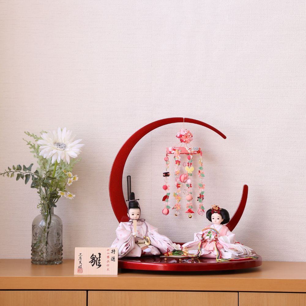 雛人形 コンパクト ひな人形 木目込み雛人形 親王飾り マール つるし付き三日月型飾り 赤 紺 かわいい 木目込みひな人形 小さい お祝い 初節句 ひな祭り 桃の節句 ティピシリーズ