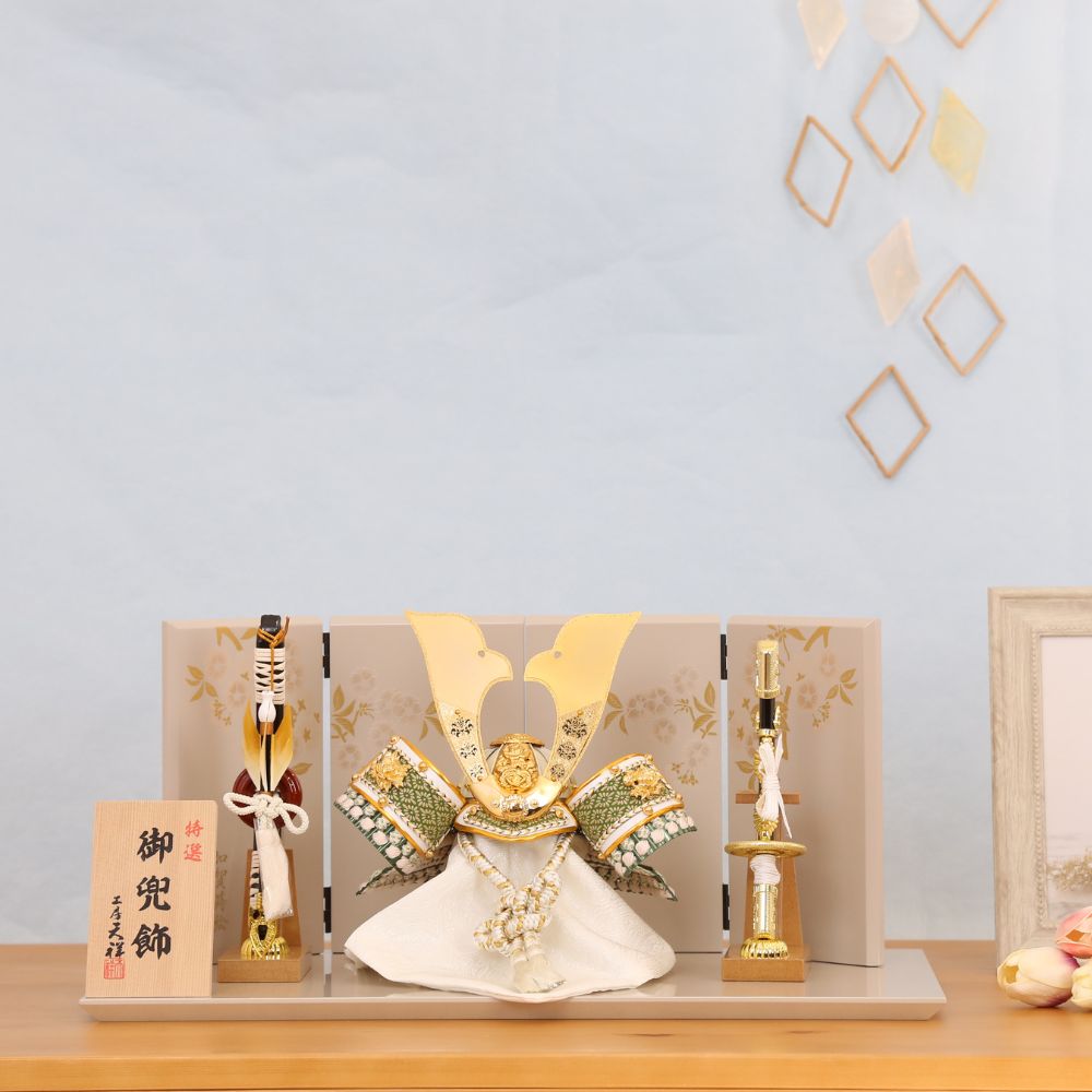 五月人形 兜 国宝模写 竹雀之兜飾り プラチナ箔兜 8号 兜飾り シンプル屏風 工房天祥 オリジナル おしゃれ モダン インテリア 端午の節句 男の子 初節句 お祝い こどもの日