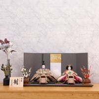 雛人形 ひな人形 コンパクト 小芥子親王 茶色二曲刺繍屏風 かわいい おしゃれ モダン インテリア ひな人形 小さい 横幅45cm 茶 ゴールド 白 お祝い 初節句 ひな祭り 桃の節句